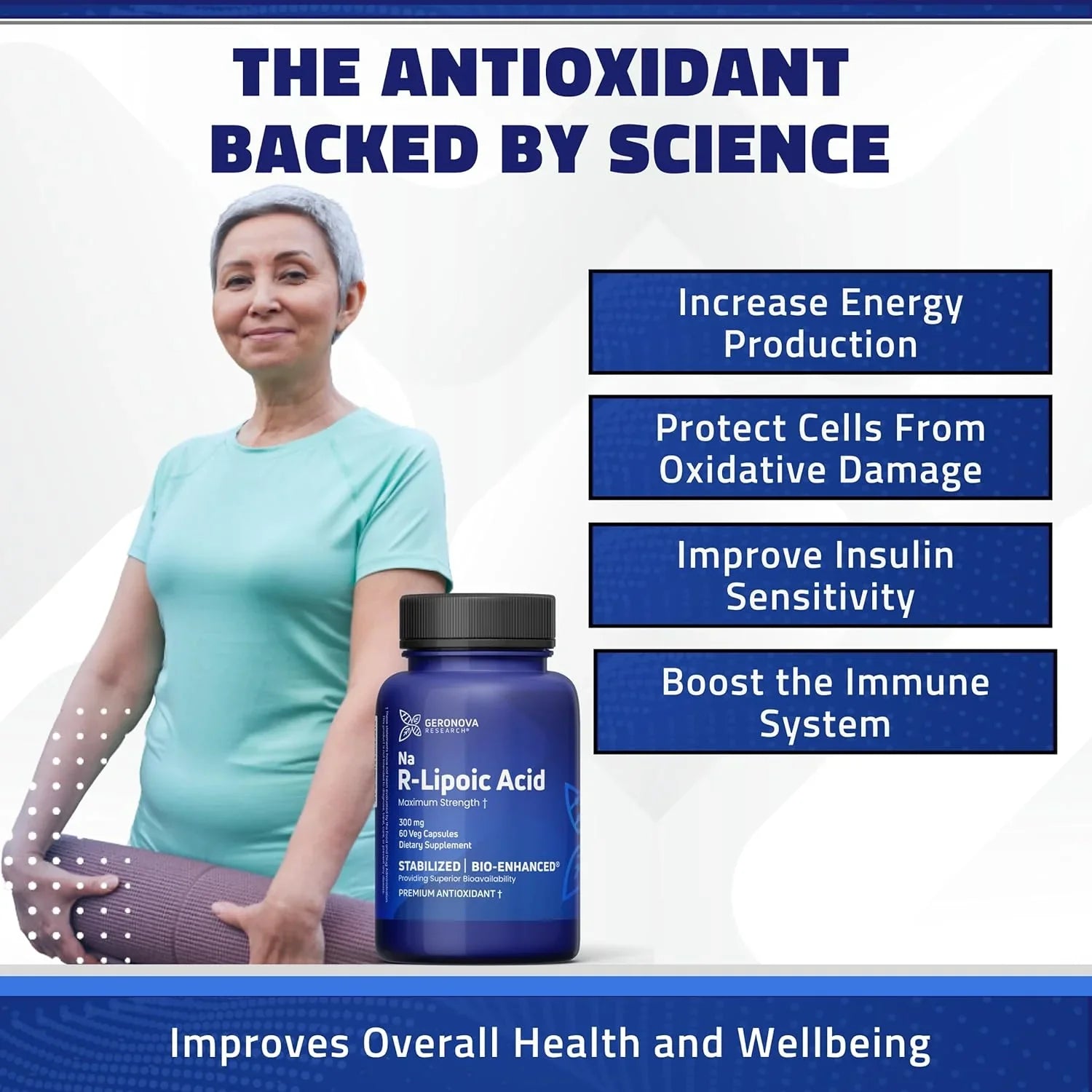 Geronova Research Bio-Enhanced R-Lipoic Acid 300mg, 60 Caps