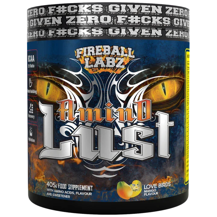 Fireball Labz AminoLust 405g is a premium nutritional supplement designed to support muscle recovery and enhance performance. This advanced formula by Fireball Labz features a potent blend of essential amino acids, including BCAAs (Branched-Chain Amino Acids), which are crucial for muscle repair and growth. AminoLust is specifically crafted for health-conscious individuals seeking to optimise their workout results and maintain peak physical condition.