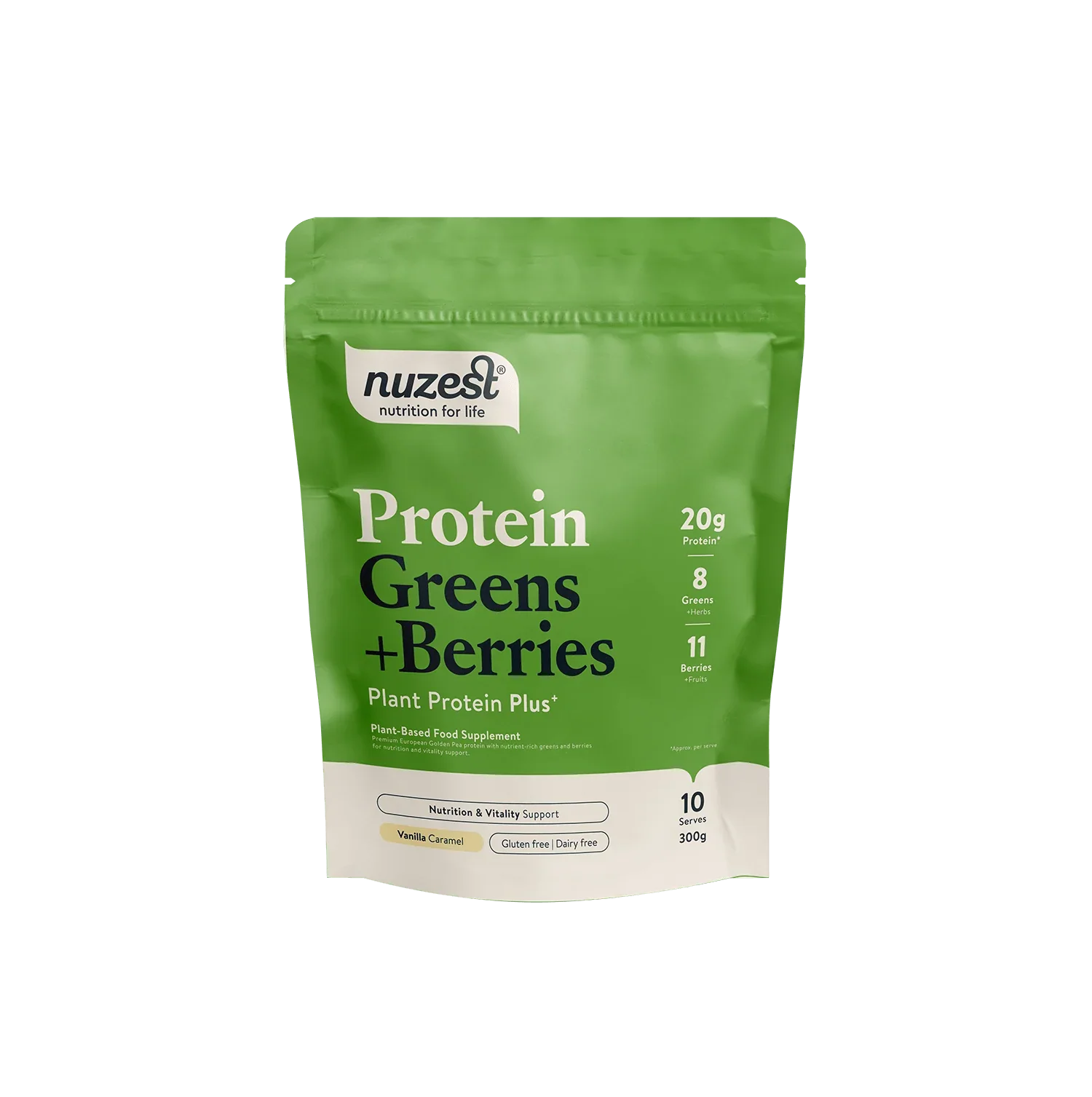 Nuzest Protein Plus Greens + Berries Vanilla & Caramel - 300g