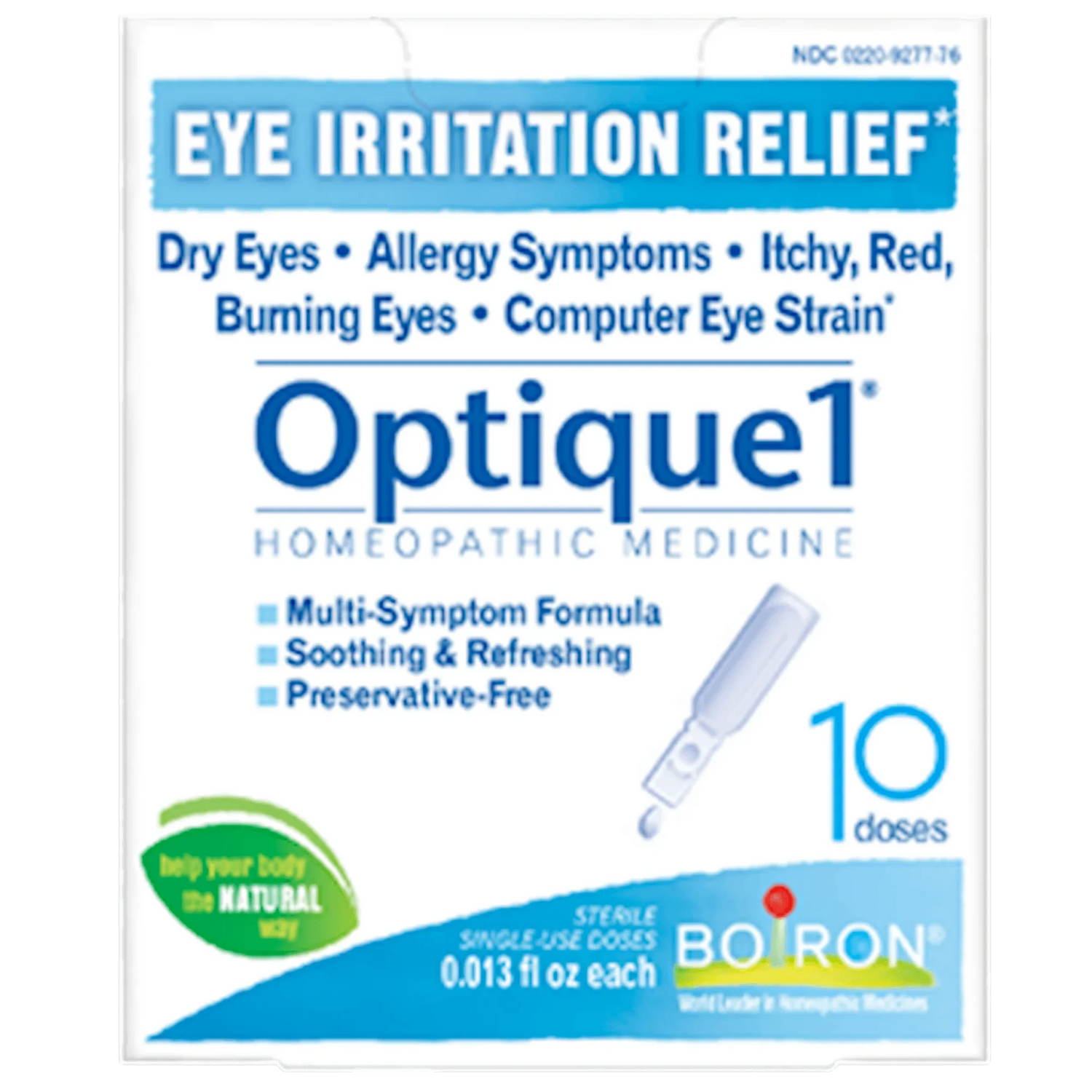 Optique 1 Eye Drops are a product offered by Boiron, a renowned name in the homeopathic medicine industry. This package contains 10 single-use doses, each dose comprising 0.013 fl oz (0.4 ml). These eye drops are targeted towards alleviating minor eye irritation symptoms such as dryness, redness, burning, stinging, grittiness or watering eyes.