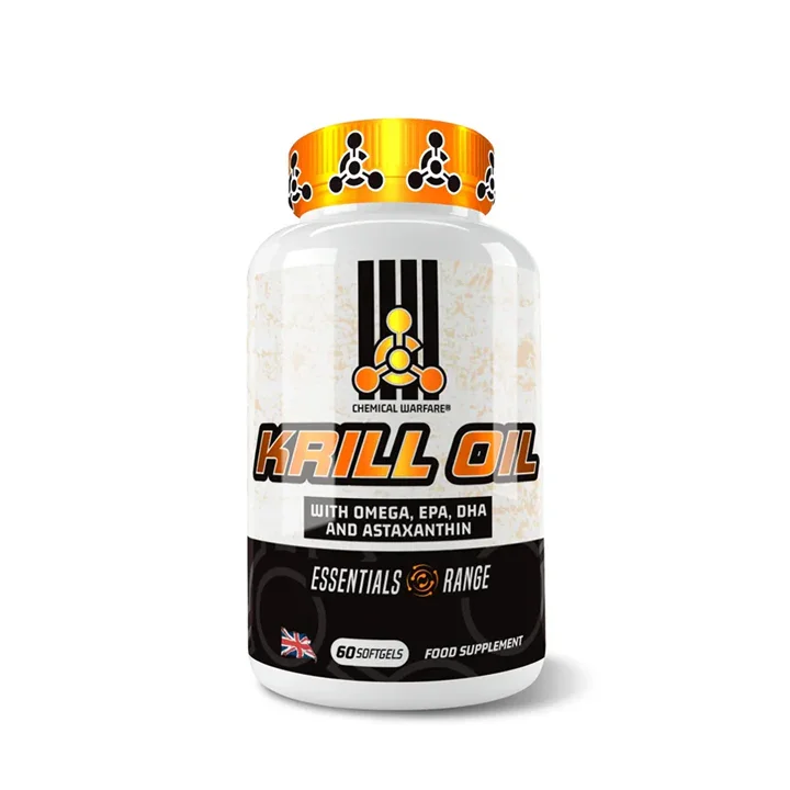 Chemical Warfare Krill Oil 60 Caps is a premium nutritional supplement designed to support overall health and wellness. Each capsule contains high-quality krill oil, a rich source of omega-3 fatty acids, including EPA and DHA, which are essential for maintaining cardiovascular health. The krill oil in this supplement is sustainably sourced, ensuring both environmental responsibility and product purity.