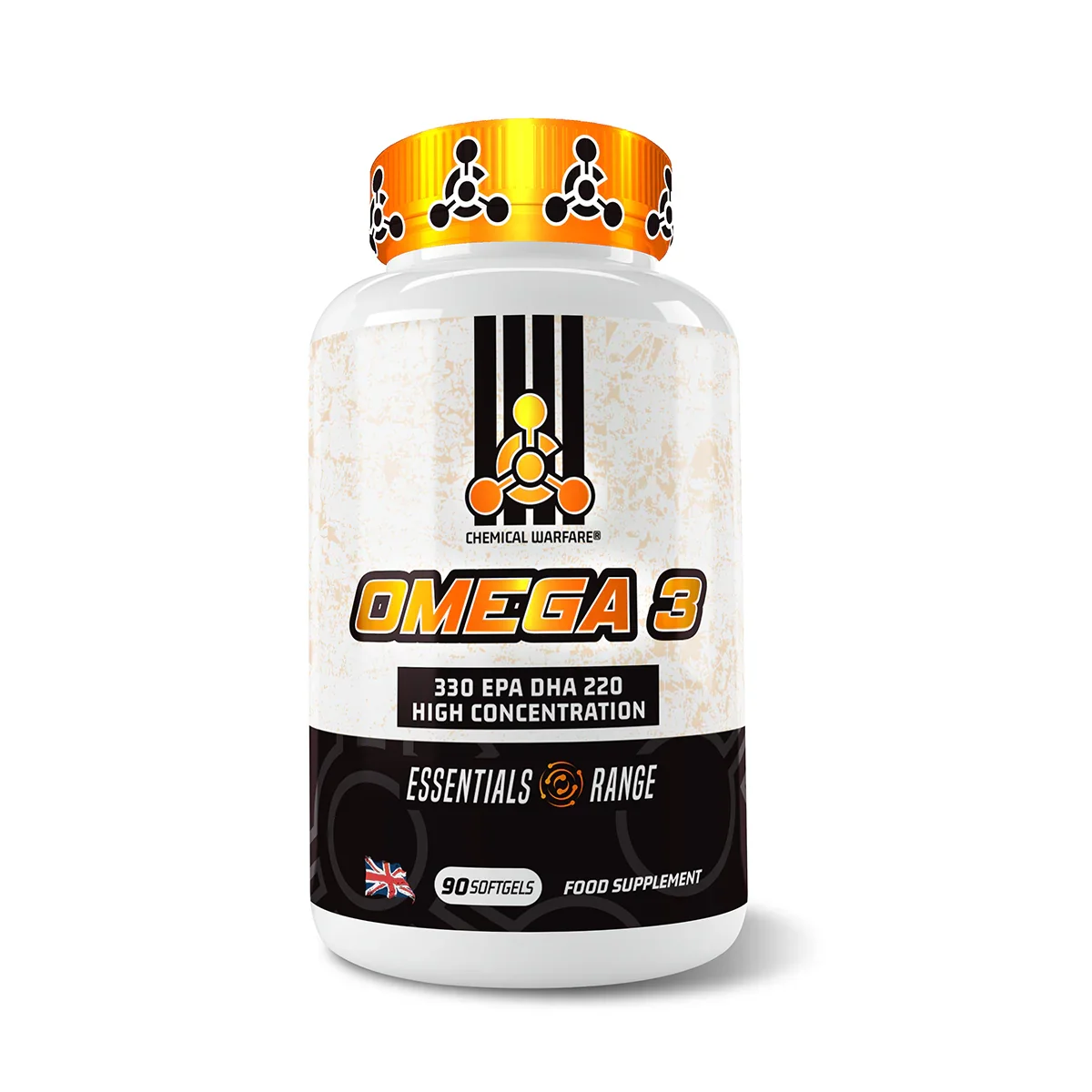 This product is suitable for health-conscious individuals looking to enhance their diet with essential fatty acids. Regular intake of Omega-3s can contribute to maintaining normal blood pressure and triglyceride levels, supporting overall cardiovascular function. Chemical Warfare Omega 3 90 Softgels are manufactured to high standards, ensuring purity and potency in every dose.