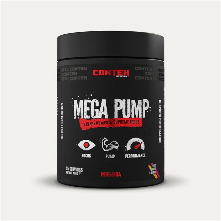 Conteh Sports Mega Pump 400g is a premium nutritional supplement designed to enhance workout performance and support muscle growth. Formulated by Conteh Sports, this advanced pre-workout powder features key active ingredients such as L-Citrulline, Beta-Alanine, and Creatine Monohydrate. These components work synergistically to increase nitric oxide production, improve blood flow, and boost endurance during intense training sessions.