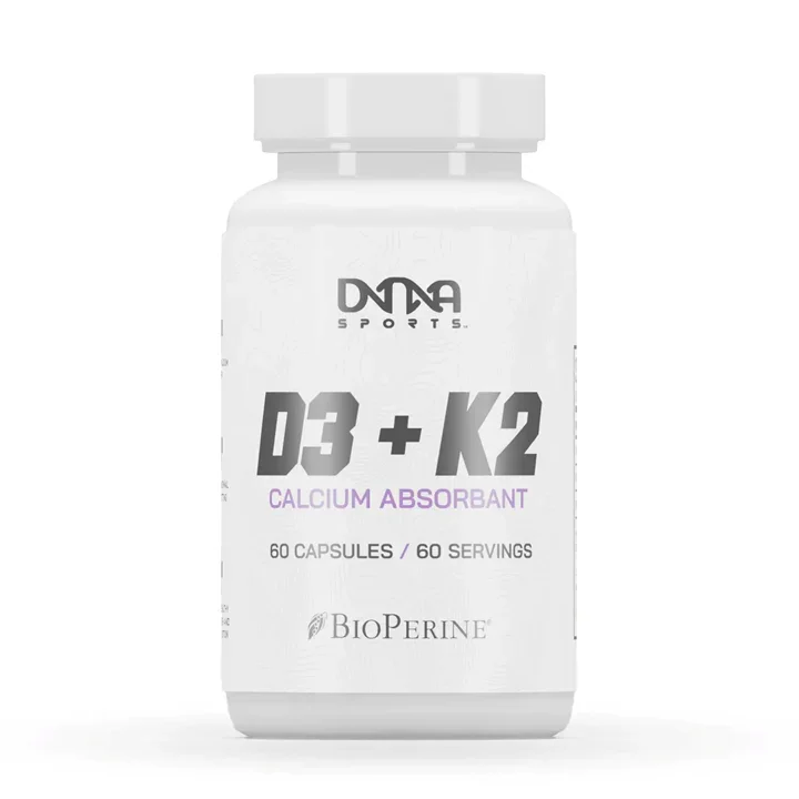 DNA Sports Vitamin D3 & K2 60 Caps is a premium nutritional supplement designed to support bone health and immune function. This expertly formulated product combines the benefits of Vitamin D3 and Vitamin K2, two essential nutrients that work synergistically to enhance calcium absorption and promote cardiovascular health. Each capsule contains a precise dosage of these active ingredients, ensuring optimal efficacy and convenience for daily use.