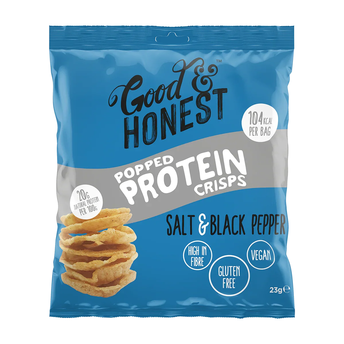 Good & Honest Popped Protein Crisps 24x23g are a nutritious snack option designed for health-conscious individuals seeking a balanced diet. Produced by Good & Honest, these crisps are crafted with high-quality pea protein, offering a satisfying crunch without compromising on nutritional value. Each 23g pack is perfectly portioned, making it convenient for on-the-go snacking or a quick protein boost between meals.