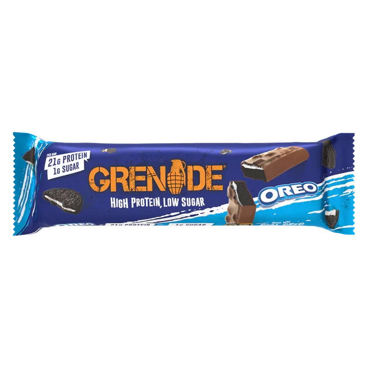 The Grenade High Protein, Low Sugar Bar 60g Oreo by Grenade is a nutritious snack designed for health-conscious individuals seeking a convenient protein boost. Each bar contains 20g of high-quality protein, primarily derived from milk protein isolate, which supports muscle recovery and growth. With only 2g of sugar per bar, it caters to those monitoring their sugar intake while still enjoying a delicious treat.