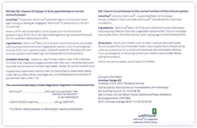The product is presented in a bottle containing 90 capsules, providing a 90-day supply when taken as advised, which is one capsule per day. These capsules are suitable for vegetarians. The Beta Glucans used in ImmiFlex are extracted from the cell walls of a proprietary strain of Saccharomyces cerevisiae, ensuring a high-quality and potent product. The Vitamin D3 is derived from cholecalciferol, which is a form of Vitamin D that is easily absorbed and utilized by the body.