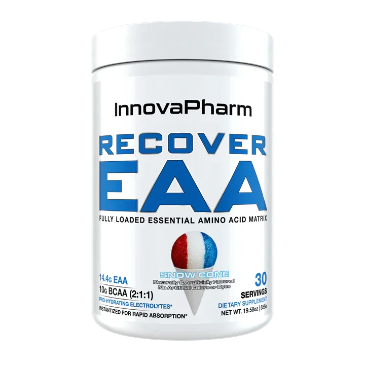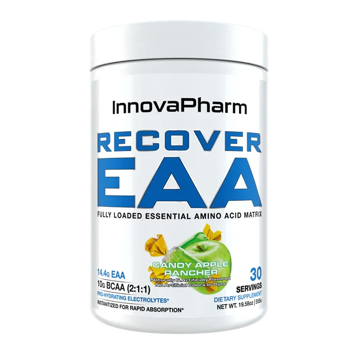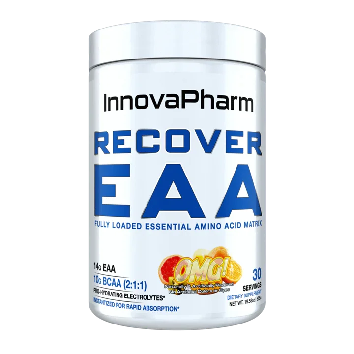 Innovapharm Recover EAA 555g is a premium nutritional supplement designed to support muscle recovery and enhance performance. This product by Innovapharm features essential amino acids (EAAs) as its main active ingredients, providing a comprehensive blend that aids in muscle repair and growth. Each serving delivers a precise ratio of EAAs, including leucine, isoleucine, and valine, which are crucial for protein synthesis and muscle maintenance.