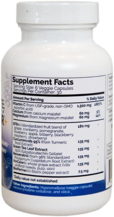 Ultimate Protector+ 180 veg caps by Integrated Health is a dietary supplement designed to provide comprehensive cellular protection. This supplement features a unique formula that includes Vitamin C, Anthocomplete™, VitaVeggie®, BioVin®, Hi-ORAC Fruit Blend, and SFB®.