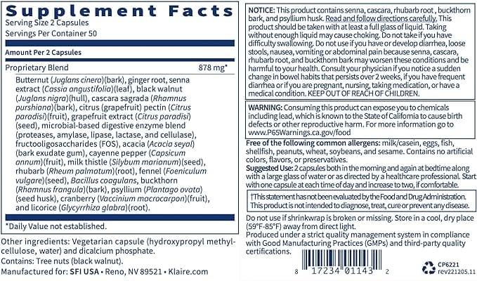 Each bottle contains 100 capsules, providing up to a month's supply, depending on usage. The formula includes a blend of natural herbs known for their cleansing properties, like psyllium husk, fennel seed, and cascara sagrada bark. This supplement does not contain any artificial preservatives, flavors, or colors.