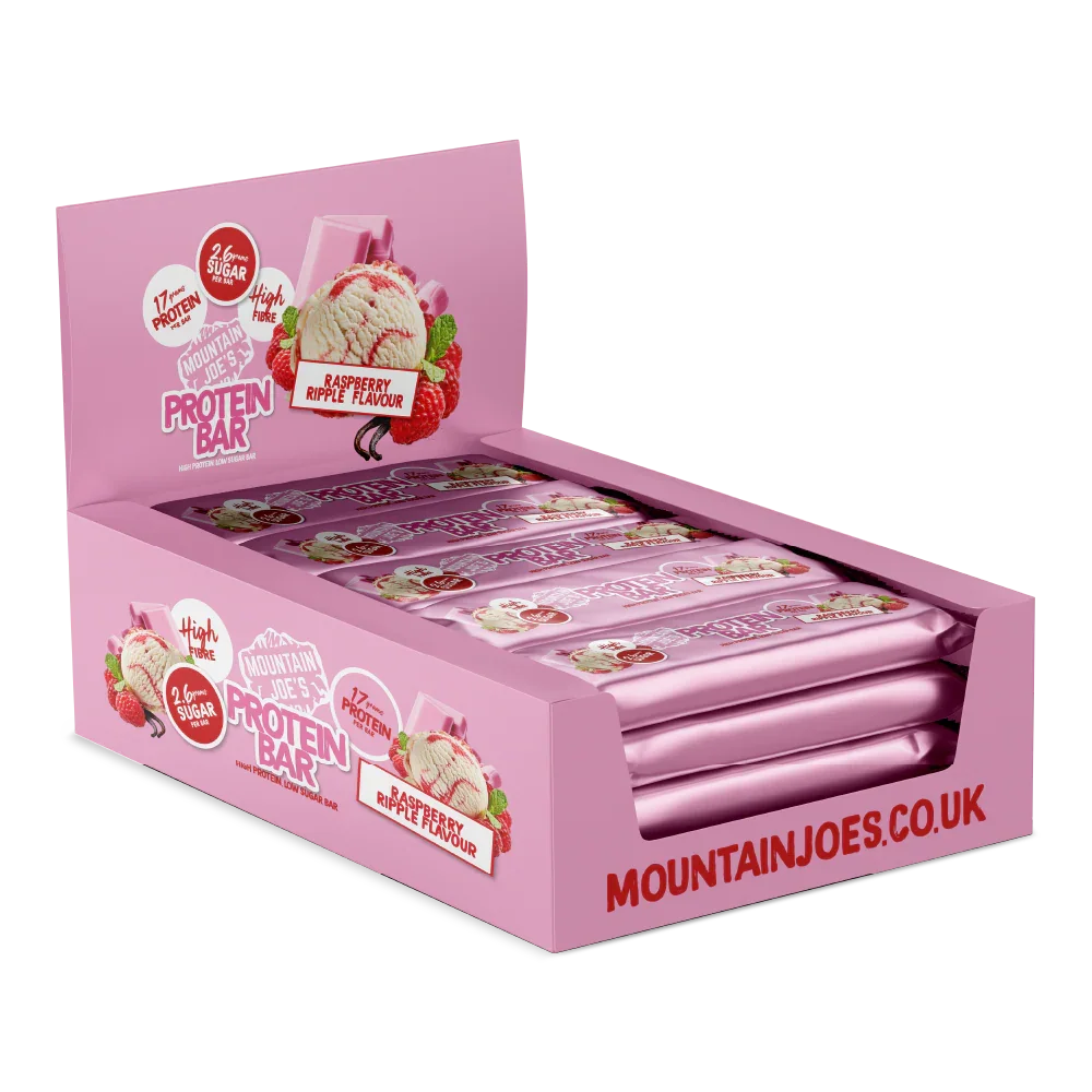 Mountain Joe's Protein Bar 12x55g - Raspberry Ripple is backordered and will ship as soon as it is back in stock.