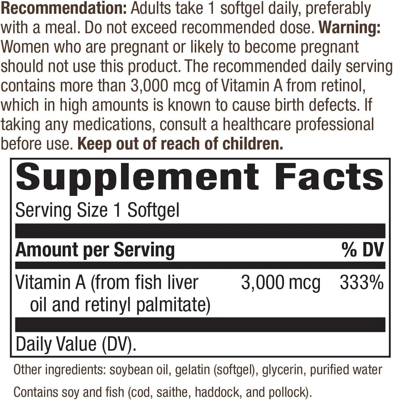 Nature's Way Vitamin A, 3,000 mcg - 100 Softgels