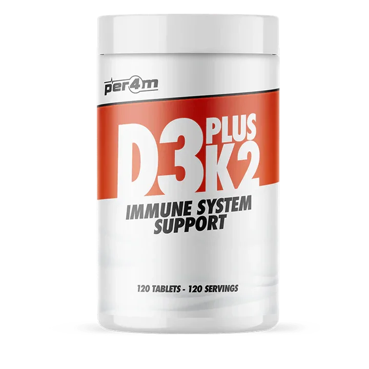 Per4m D3 Plus K2 120 Tabs by Per4m is a nutritional supplement designed to support bone health and immune function. Each tablet contains a synergistic blend of Vitamin D3 and Vitamin K2, two essential nutrients that work together to enhance calcium absorption and promote cardiovascular health. Vitamin D3, also known as cholecalciferol, is crucial for maintaining healthy bones and teeth, while Vitamin K2, in the form of menaquinone, helps direct calcium to the bones and away from arteries, supporting overall heart health.