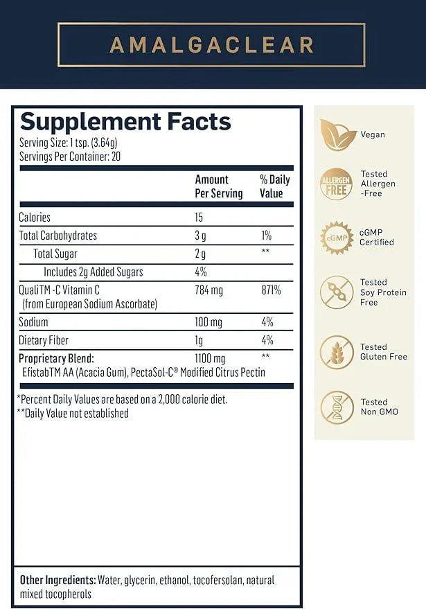 AmalgaClear from Quicksilver Scientific is a light lemon-flavored product that can be conveniently mixed with water or other beverages, providing an easy consumption method. The product comes in a jar with a 73g capacity. As a dietary supplement, AmalgaClear can be used daily to maintain healthy levels of heavy minerals in the body. Individual dosage may vary, so users should consult their healthcare professional before using AmalgaClear.