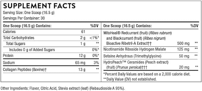 Each serving of Collagen Plus Powder delivers 12 grams of hydrolyzed collagen peptides that can contribute to the structural integrity of the skin, tendons, ligaments, and bones. Nicotinamide riboside enhances cellular repair and energy production, while the polyphenol blend offers antioxidant benefits. The formulation is Non-GMO, gluten-free, and free from artificial preservatives, and comes with a natural berry flavor to be easily mixed with water or a preferred beverage.