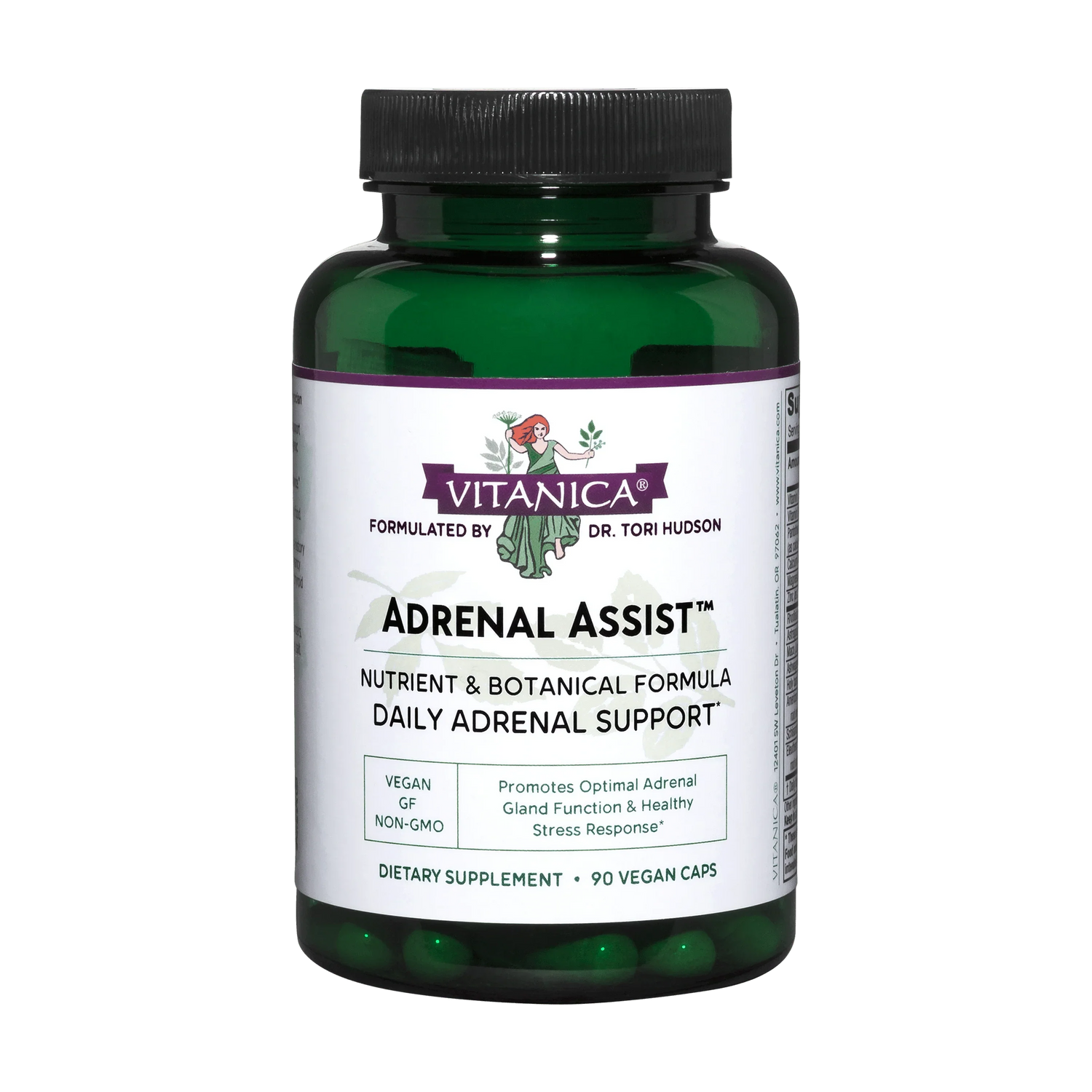 Adrenal Assist, 90 Vegan Capsules - Vitanica, is a dietary supplement designed to support the adrenal glands' healthy functioning. The product contains 90 vegan capsules, all packed in a lightweight and easy-to-use bottle. Each capsule contains a blend of herbal extracts, vitamins, minerals, and other essential nutrients that aim to enhance the adrenal glands' functioning, helping the body to cope with stress more effectively.